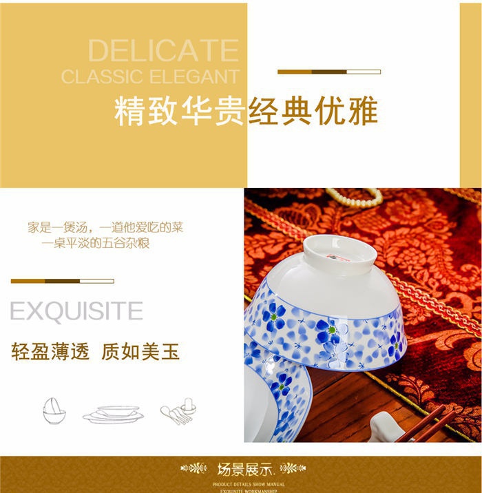 62頭蘭花夢,一個湯煲,一個魚盤,一個十二寸大圓盤,一個飯勺,十二個骨碟,十個盤子,十二個4.5寸飯碗,二個面碗,十二個調(diào)羹,十個筷子架。