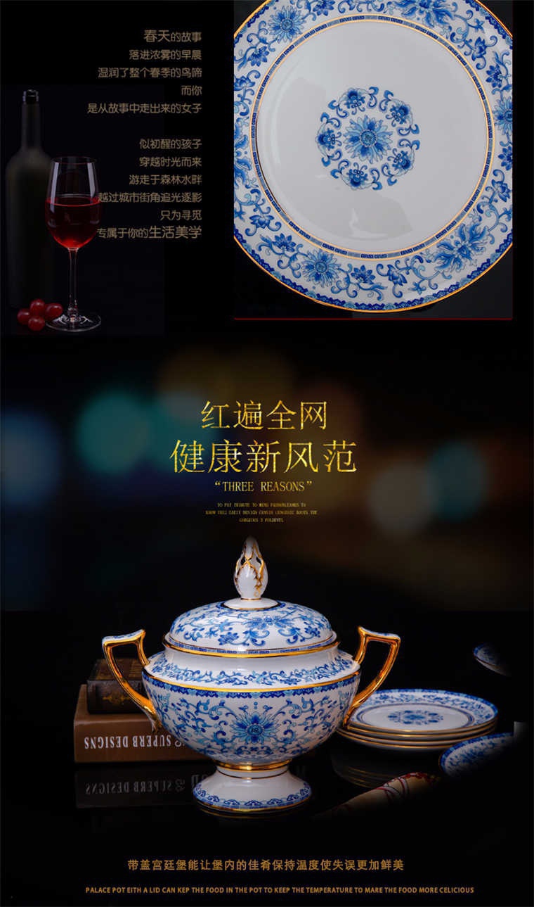 90頭青花餐具,一個(gè)宮廷湯煲,一個(gè)十二寸魚盤,一個(gè)10寸平盤,一個(gè)10寸月光盤,一個(gè)9寸平盤,一個(gè)9寸湯盤,四個(gè)8寸平盤,四個(gè)8寸湯盤,四個(gè)6寸高腳面碗,十個(gè)4.5寸飯碗,十個(gè)4寸湯碗,十個(gè)7.5寸淺盤,十個(gè)4寸小蝶,十個(gè)筷架,十個(gè)天鵝小勺,一個(gè)天鵝大勺,一個(gè)花籃,兩個(gè)胡椒瓶,一個(gè)牙簽筒,一個(gè)大煙灰缸,一個(gè)雙層水果盤,一個(gè)美鵝,一個(gè)毛巾碟,兩個(gè)燉盅。