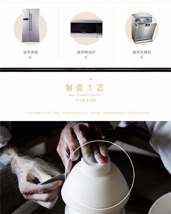 65頭醉花吟,一個湯煲,一個魚盤,一個大飯勺,一個大湯碗,一個牙簽筒,六個面碗,四個三寸碟,十個盤子,十個4.5寸飯碗,十個五寸骨碟,十個調(diào)羹,十個筷子架。