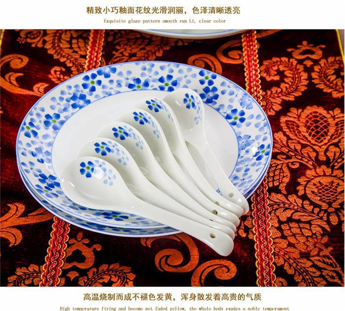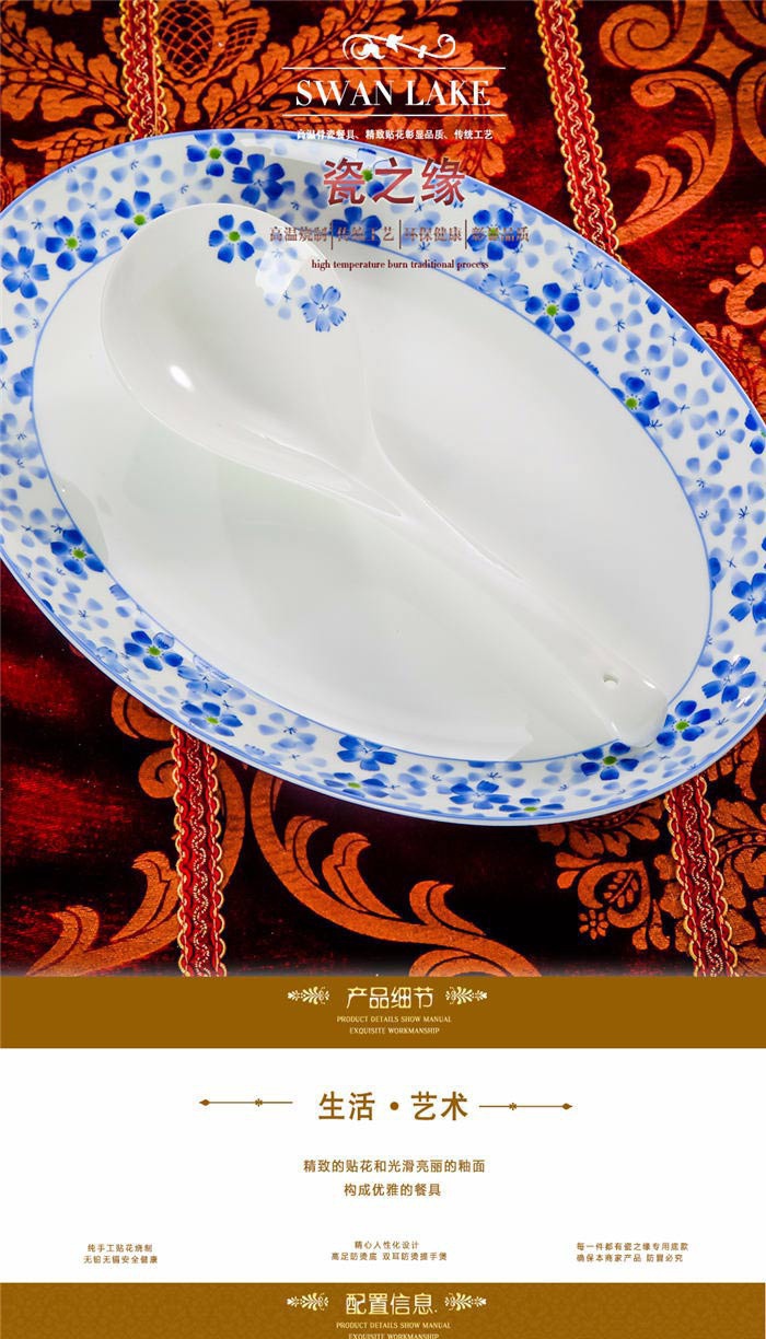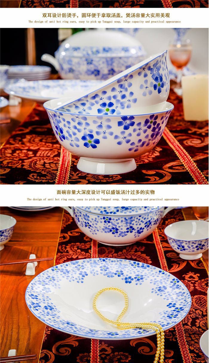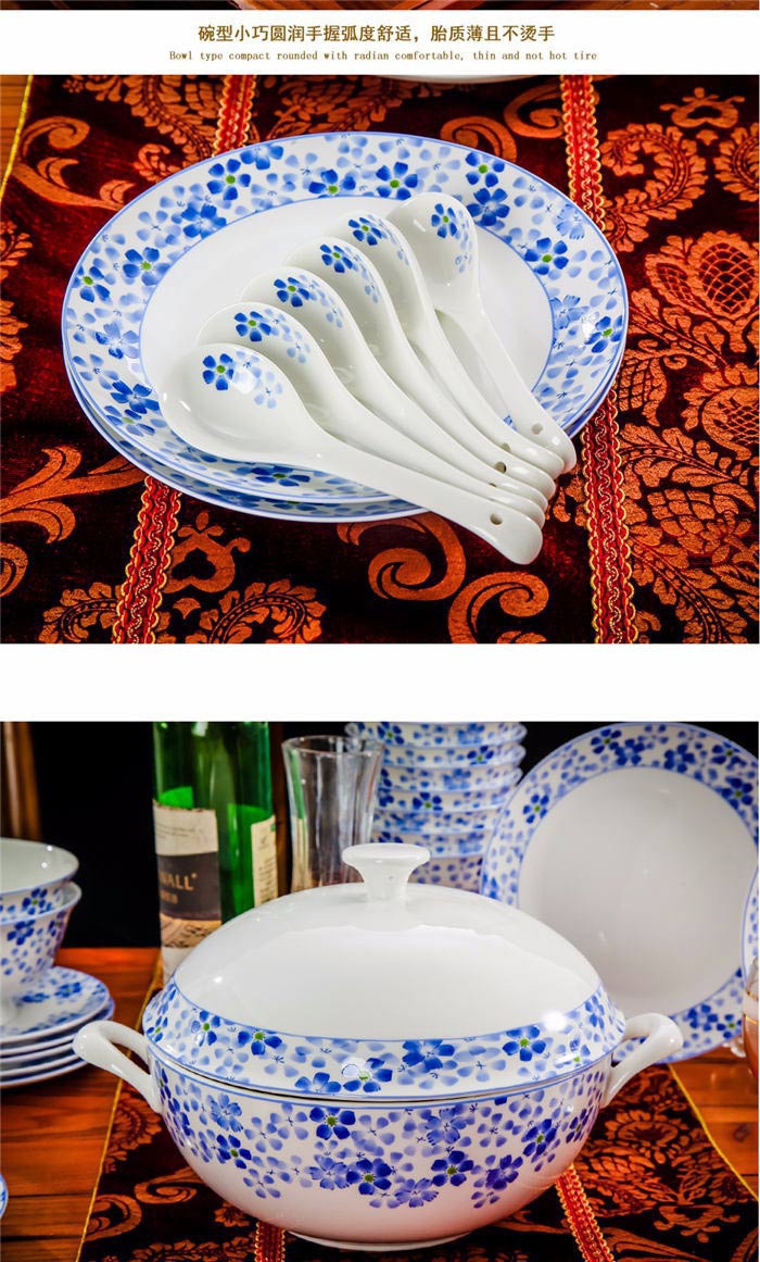 62頭蘭花夢,一個湯煲,一個魚盤,一個十二寸大圓盤,一個飯勺,十二個骨碟,十個盤子,十二個4.5寸飯碗,二個面碗,十二個調(diào)羹,十個筷子架。