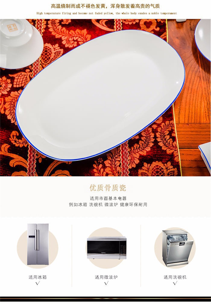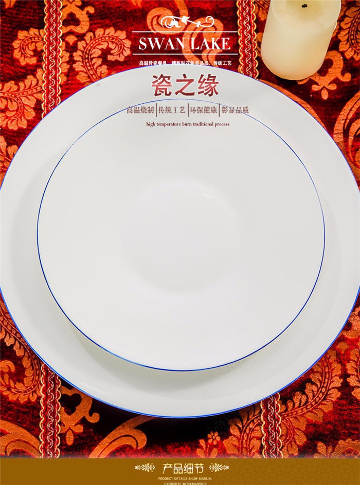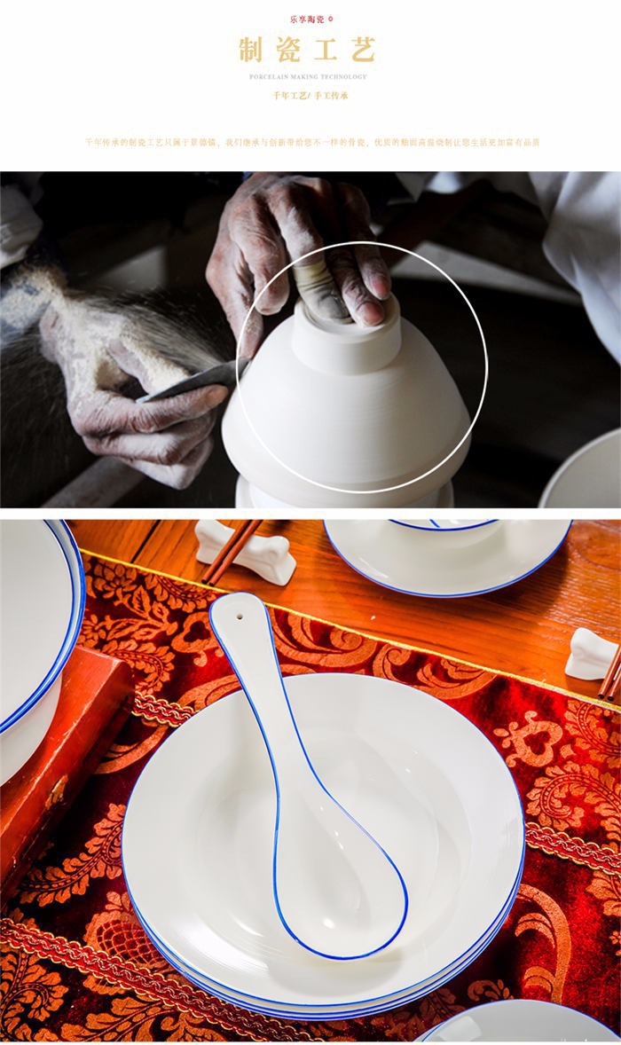 58頭蘭邊螺旋,一個湯煲,一個魚盤,一個十寸圓盤,一個飯勺,一個煙灰缸,一個牙簽筒,兩個面碗,十個4.5寸飯碗,十個五寸骨碟,十個八寸盤,十個調(diào)羹,十個筷子架。
