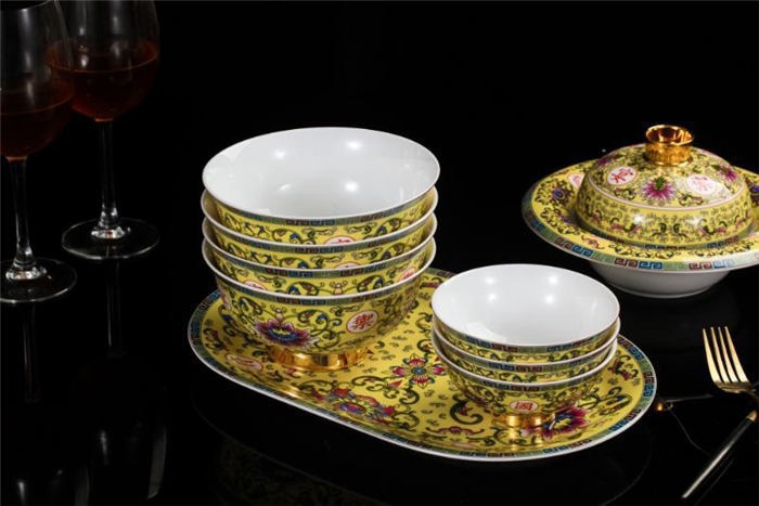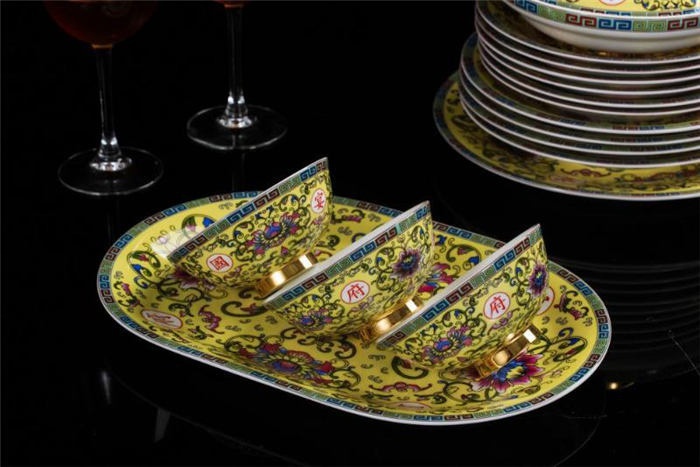 十個(gè)碗,7寸骨盤十塊,盤子十塊,小勺十個(gè),筷子架十個(gè),面碗四個(gè),魚盤一個(gè),大圓盤一塊,湯煲一個(gè),合和器2套四塊,燉盅2套四個(gè),果盤1套二個(gè),大飯勺一個(gè)。